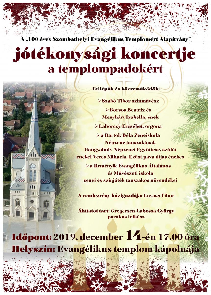 A 100 éves Szombathelyi Evangélikus Templomért Alapítvány jótékonysági koncertet szervezett december 14-én az evangélikus templom padjainak felújítására.