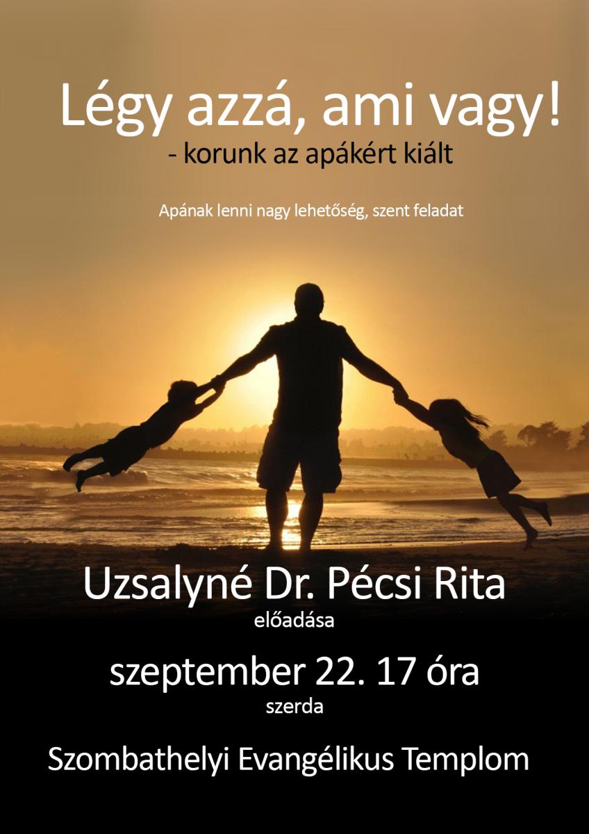 Légy azzá, ami vagy! - korunk az apákért kiált címmel tartott előadást szeptember 22-én Uzsalyné dr. Pécsi Rita neveléskutató a szombathelyi evangélikus templomban. Az alkalomról képgalériát láthatnak: